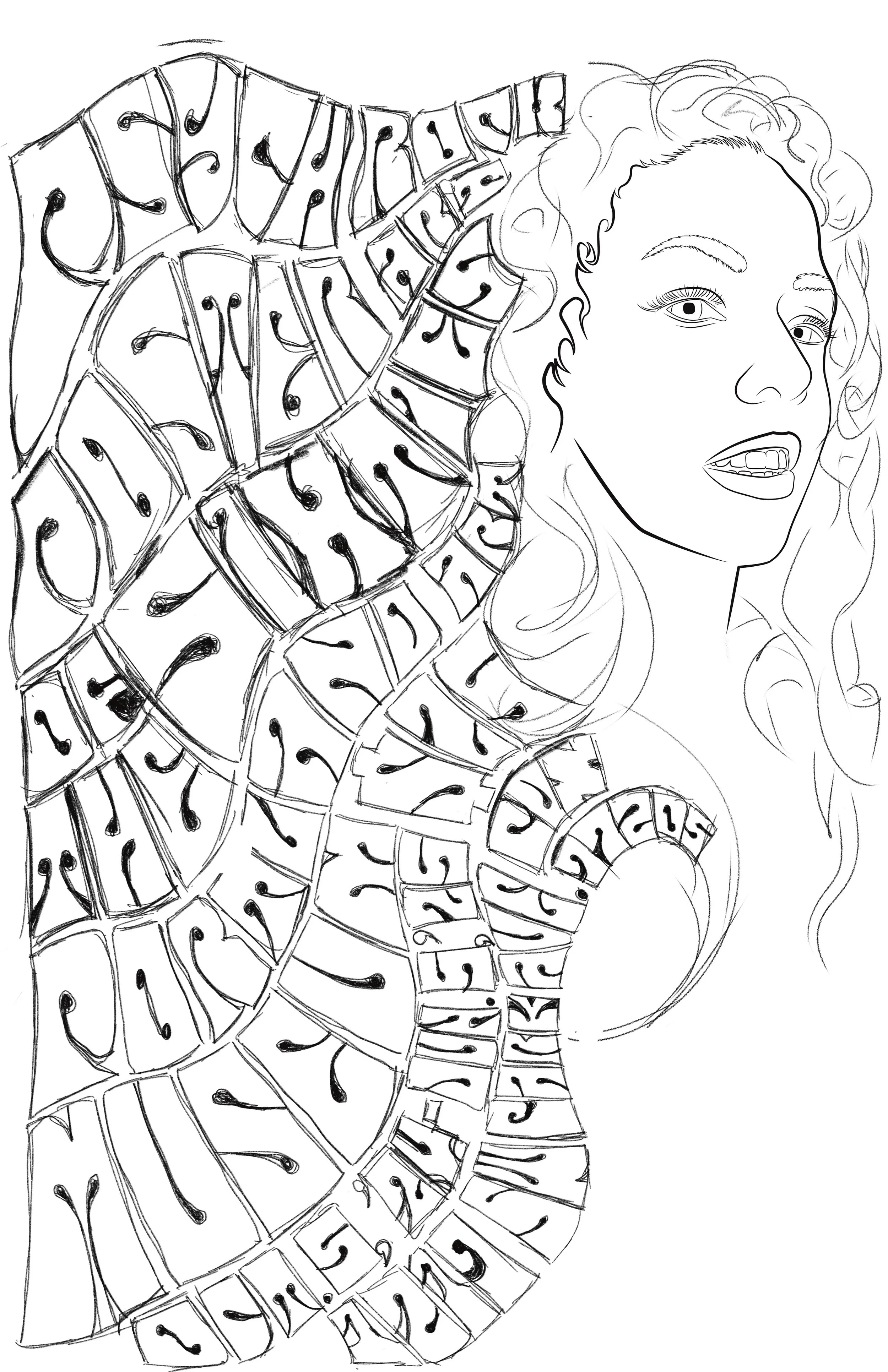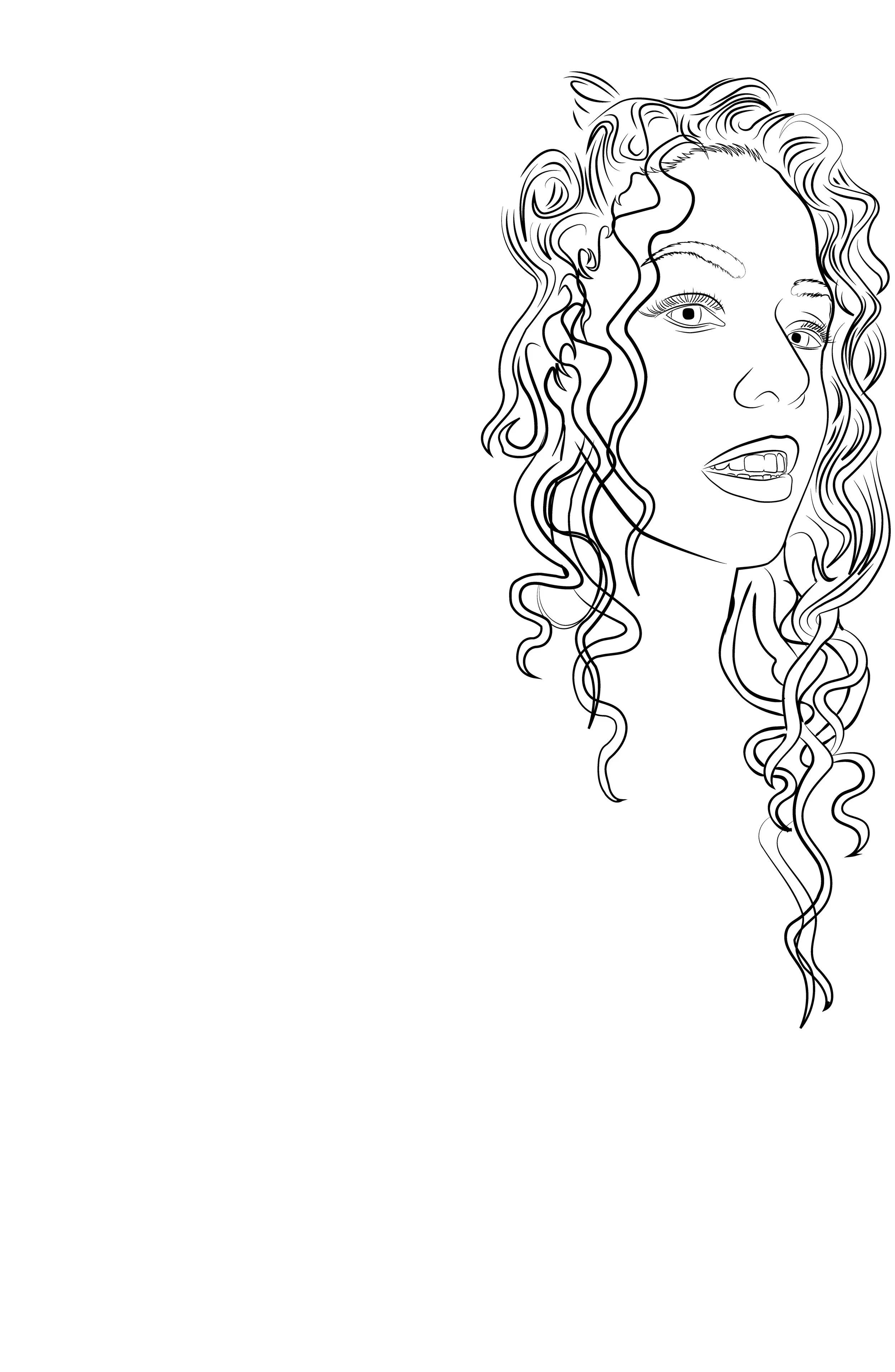 Once I was happy with the face, I bounced the file into Procreate to draw in the hair and continue experimenting with the layout to find the right balance of her face and the text layout.