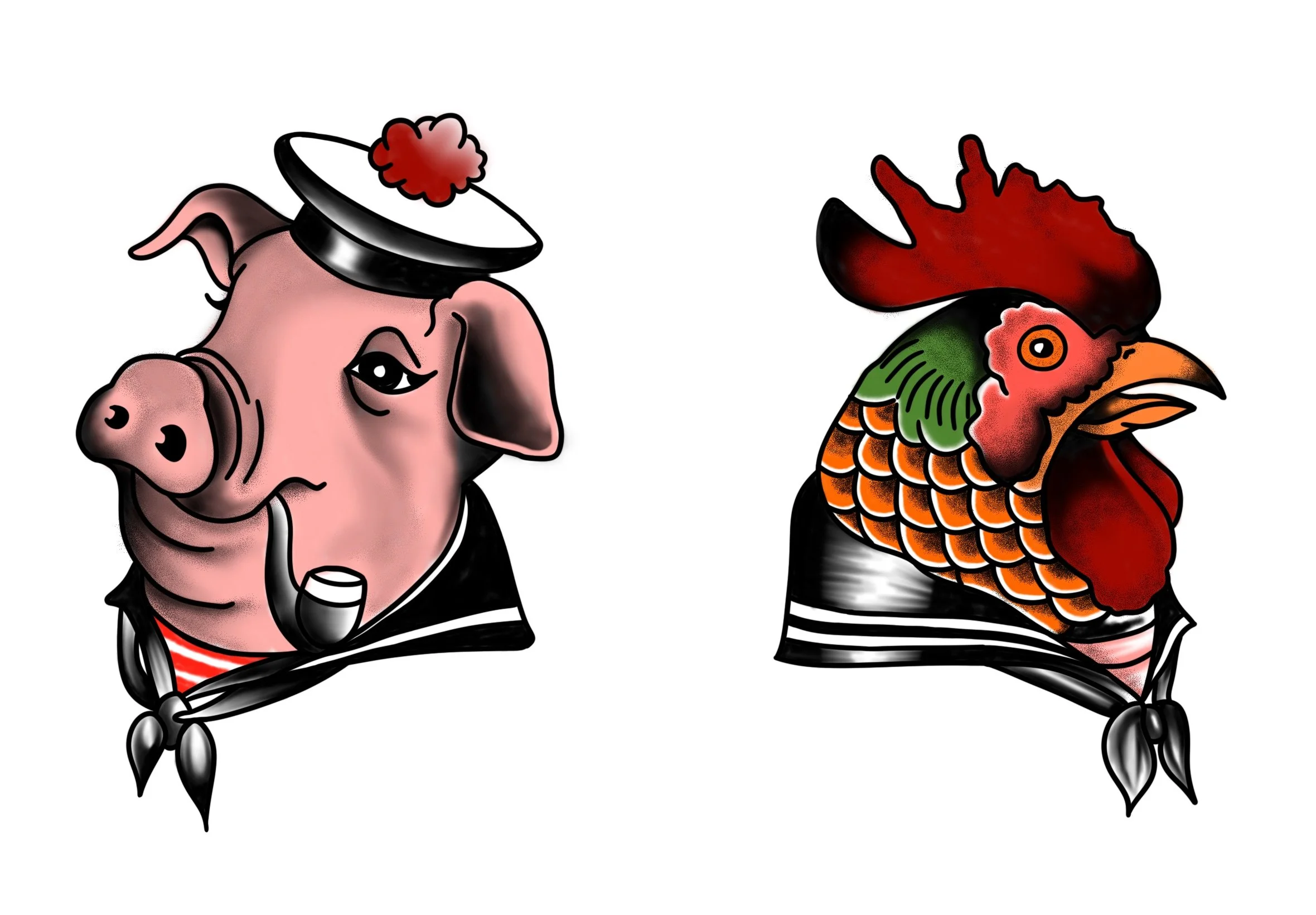This is my neighbor’s tattoo shop. For this project, I designed for exactly what Electric Chair Tattoo Co. is—a fantastic tattoo shop with great merch and exceptional artists. I wanted to use early American traditional hand drawn tattoo art with a simple color palette for the design foundations. These are all existing traditional tattoos, and here's some of what I came up with as an interpretation of them.